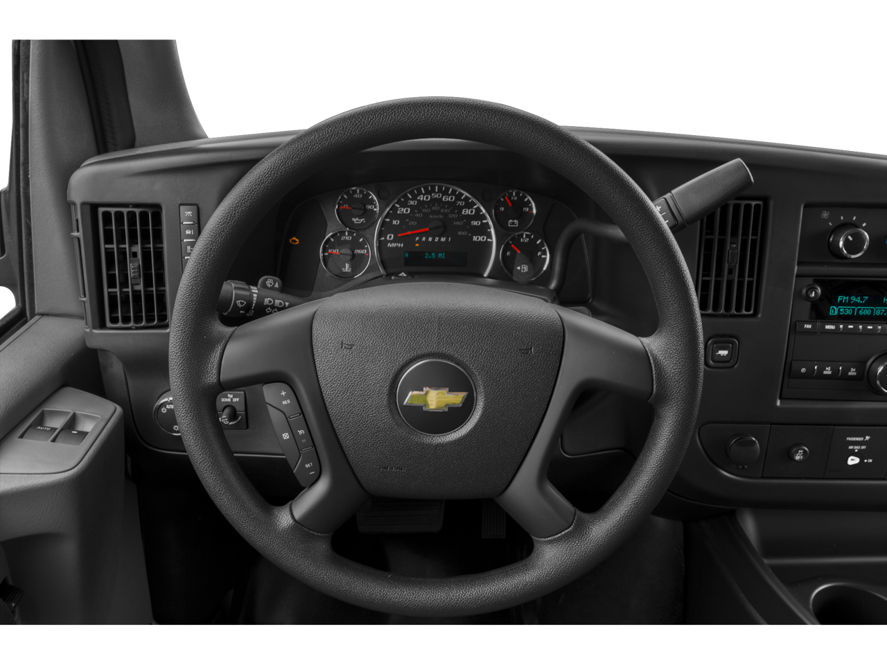 AUDIO SYSTEM, AM/FM STEREO WITH MP3 PLAYER seek-and-scan, digital clock and 2 front door speakers, HEAVY-DUTY, ELECTRONICALLY CONTROLLED with overdrive tow/haul mode and internal transmission oil cooler (STD), ENGINE, VORTEC 4.8L V8 SFI (285 hp [212.5 kW] @ 5400 rpm, 295 lb-ft of torque [398.3 N-m] @ 4600 rpm) (STD) (Includes external engine oil cooler. Chevrolet Express Cargo Van with Summit White exterior and Medium Pewter interior features a 8 Cylinder Engine with 285 HP at 5400 RPM*.