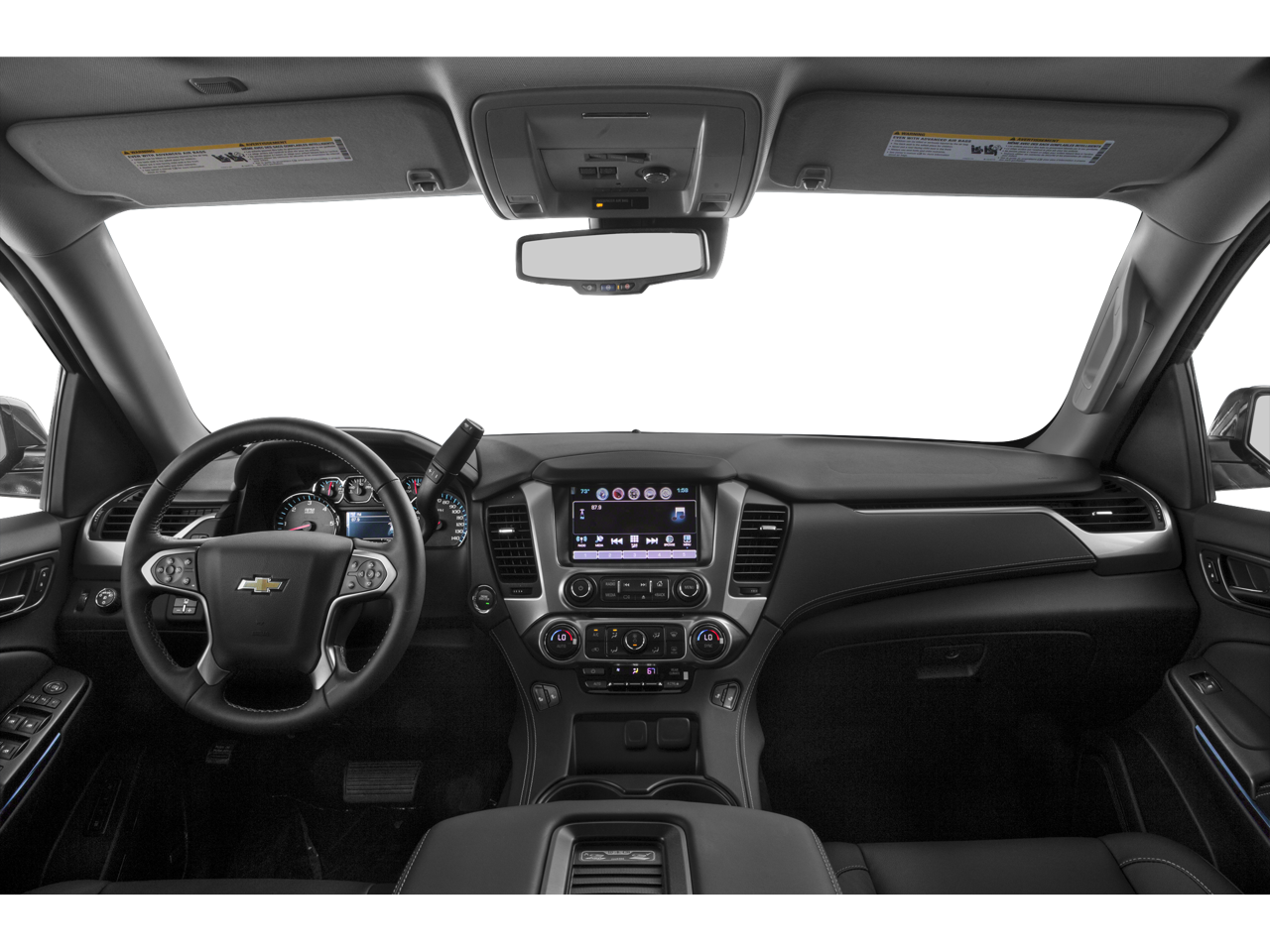 SUN, ENTERTAINMENT AND DESTINATIONS PACKAGE, (CF5) power sunroof, (U42) rear seat DVD entertainment system and (IO6) Chevrolet MyLink radio with navigation, LUXURY PACKAGE includes (AS8) power fold third row 60/40 split bench seats, (ATH) Passive Entry System, (ATT) second row power release 60/40 split folding bench seat, (BTM) keyless start, (DL3) outside heated power-adjustable, power-folding mirrors, (KA6) heated second row seats, (K4C) Wireless charging device, (N38) memory power tilt and telescopic steering column, (TC2) Hands free liftgate, (T3U) fog lamps, (UD5) front and rear parking assist, (UFG) Rear Cross-Traffic Alert, (UKC) Side Blind Zone Alert and (UVD) heated steering wheel and color key rear fascia trailer hitch closeout, ENTERTAINMENT SYSTEM, REAR SEAT, BLU-RAY/DVD with remote control, overhead display, two 2-channel wireless infrared headphones and auxiliary audio/video input jacks/SD and USB slots, WHEELS, 20 X 9 (50.8 CM X 22.9 CM) POLISHED-ALUMINUM, AUDIO SYSTEM, CHEVROLET MYLINK RADIO WITH NAVIGATION, AM/FM STEREO AND CD PLAYER 5 USB ports, 1 SD card reader and an auxiliary jack, MIRRORS, OUTSIDE HEATED POWER-ADJUSTABLE, POWER-FOLDING AND DRIVER-SIDE AUTO-DIMMING with integrated turn signal indicators and ground illumination, ENGINE, 5.3L ECOTEC3 V8 WITH ACTIVE FUEL MANAGEMENT, DIRECT INJECTION AND VARIABLE VALVE TIMING includes aluminum block construction (355 hp [265 kW] @ 5600 rpm, 383 lb-ft of torque [518 N-m] @ 4100 rpm) (STD), TRANSMISSION, 6-SPEED AUTOMATIC, ELECTRONICALLY CONTROLLED with overdrive and tow/haul mode (STD), STEERING WHEEL, HEATED, LEATHER-WRAPPED AND COLOR-KEYED with theft-deterrent locking feature. Local Trade, LOCATED AT HUBLER HONDA IN TAYLORSVILLE