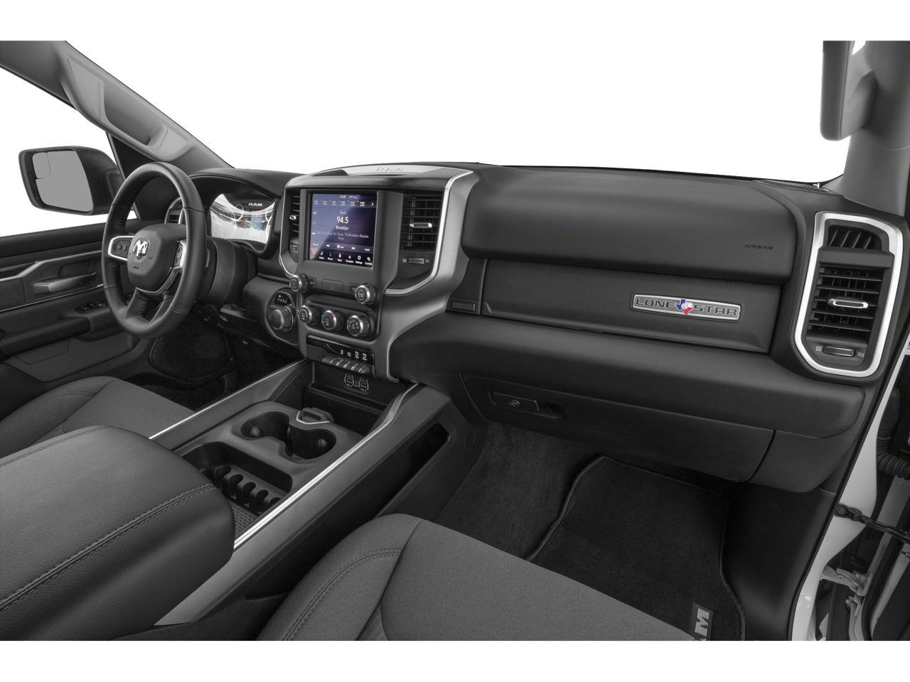 BIG HORN LEVEL 2 EQUIPMENT GROUP Radio: Uconnect 4 w/8.4 Display, Rear Window Defroster, Integrated Center Stack Radio, ParkSense Front/Rear Park Assist w/Stop, Rear View Auto Dim Mirror, Power Adjustable Pedals, Rear Power Sliding Window, Rear Dome w/On/Off Switch Lamp, Glove Box Lamp, Power 4-Way Driver Lumbar Adjust, 115V Auxiliary Rear Power Outlet, Power 8-Way Driver Seat, 2 USB Full Function/Charge Only Media Hub, Heated Front Seats, Heated Steering Wheel, 8.4 Touchscreen Display, Foam Bottle Insert (Door Trim Panel), Class IV Receiver Hitch, Dampened Tailgate, Security Alarm, Power Heated Fold Away Mirrors, Big Horn IP Badge, Remote Start System, SiriusXM Satellite Radio, 400W Inverter, Air Conditioning ATC w/Dual Zone Control, 115V Auxiliary Power Outlet, Cluster 7.0 TFT Color, WHEELS: 20 X 9 ALUMINUM CHROME CLAD, SPORT APPEARANCE PACKAGE Tires: 275/55R20 OWL All Season, Exterior Mirrors w/Supplemental Signals, Power Heated Fold-Away Mirrors, Body Color Door Handles, Exterior Mirrors Courtesy Lamps, Auto Dim Exterior Driver Mirror, Exterior Mirrors w/Memory, Grille B/Color Outline 1 Texture 2, Black Interior Accents, Power-Folding Mirrors, Body Color Front Bumper, Body Color Rear Bumper w/Step Pads, PREMIUM LIGHTING GROUP Front LED Fog Lamps, LED Reflector Headlamps, LED Taillamps, RADIO: UCONNECT 4C NAV W/8.4 DISPLAY Google Android Auto®, SiriusXM Traffic Plus, SiriusXM Satellite Radio, Disassociated Touchscreen Display, HD Radio, For Details, Visit DriveUconnect.com, Integrated Center Stack Radio, For More Info, Call 800-643-2112, 1-Yr SiriusXM Guardian Trial, Air Conditioning ATC w/Dual Zone Control, GPS Navigation, SiriusXM Travel Link, No Satellite Coverage w/HI/AK/PR/VI/GU, 8.4 Touchscreen Display, Apple CarPlay®, BLIND SPOT & CROSS PATH DETECTION, QUICK ORDER PACKAGE 23Z BIG HORN/LONE STAR Engine: 3.6L V6 24V VVT eTorque UPG I, Transmission: 8-Speed Automatic (850RE), Steering Wheel Mounted Audio Controls, TRANSMISSION: 8-SPEED AUTOMATIC (850RE) (STD), ENGINE: 3.6L V6 24V VVT ETORQUE UPG I (STD), BLACK, DELUXE CLOTH BUCKET SEATS Power 8-Way Driver Seat, Center Console Parts Module, Bucket Seats, Manual Adjust 4-Way Front Passenger Seat, Full Length Floor Console, Power 4-Way Driver Lumbar Adjust.