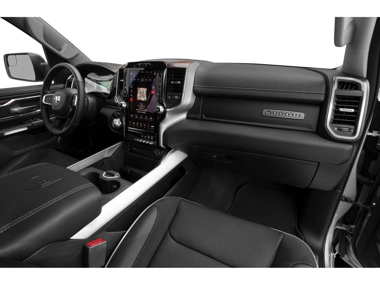 SPORT APPEARANCE PACKAGE Tires: 275/55R20 OWL All Season, Black Interior Accents, Power Heated Fold-Away Mirrors, Sport Performance Hood, Body Color Front Bumper, Body Color Door Handles, Body Color Rear Bumper w/Step Pads, Wheels: 20 x 9 Premium Painted w/Inserts, Grille B/Color Outline 3 Texture 4, LARAMIE LEVEL 1 EQUIPMENT GROUP Remote Tailgate Release, Auto High Beam Headlamp Control, Blind Spot & Cross Path Detection, Rain Sensitive Windshield Wipers, ParkSense Front/Rear Park Assist w/Stop, Tailgate Ajar Warning Lamp, Foam Bottle Insert (Door Trim Panel), Single Disc Remote CD Player, Rear 60/40 Folding Split Recline Seat, ENGINE: 5.7L V8 HEMI MDS VVT Active Noise Control System, Heavy Duty Engine Cooling, GVWR: 7,100 lbs, Dual Rear Exhaust w/Bright Tips, Hemi Badge, 220 Amp Alternator, BLACK, LEATHER TRIMMED BUCKET SEATS Bucket Seats, Rear 60/40 Folding Split Recline Seat, Center Console Parts Module, Full Length Upgraded Floor Console, OFF ROAD GROUP Off Road Decals, Steering Gear Skid Plate, Front Suspension Skid Plate, Front Extra HD Shock Absorbers, Rear Extra HD Shock Absorbers, Tire: Full Size Spare, Tow Hooks, E-Locker Rear Axle, Transfer Case Skid Plate, Fuel Tank Skid Plate, Hill Descent Control, RADIO: UCONNECT 4C NAV W/8.4 DISPLAY SiriusXM Traffic Plus, Disassociated Touchscreen Display, HD Radio, For Details, Visit DriveUconnect.com, 1-Yr SiriusXM Guardian Trial, GPS Navigation, SiriusXM Travel Link, No Satellite Coverage w/HI/AK/PR/VI/GU, TRANSMISSION: 8-SPEED AUTOMATIC (8HP75). Ram Laramie with Diamond Black Crystal Pearlcoat exterior and Black interior features a 8 Cylinder Engine with 305 HP at 6400 RPM*.