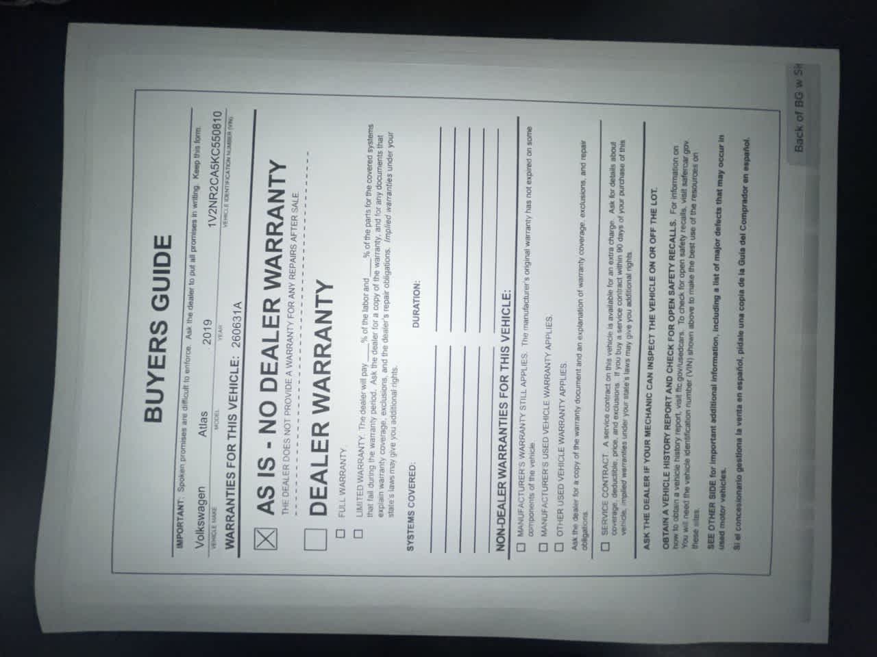 - Vehicle Name: Volkswagen Atlas