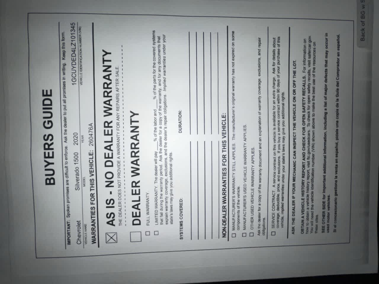 - Vehicle Name: Chevrolet Silverado 1500