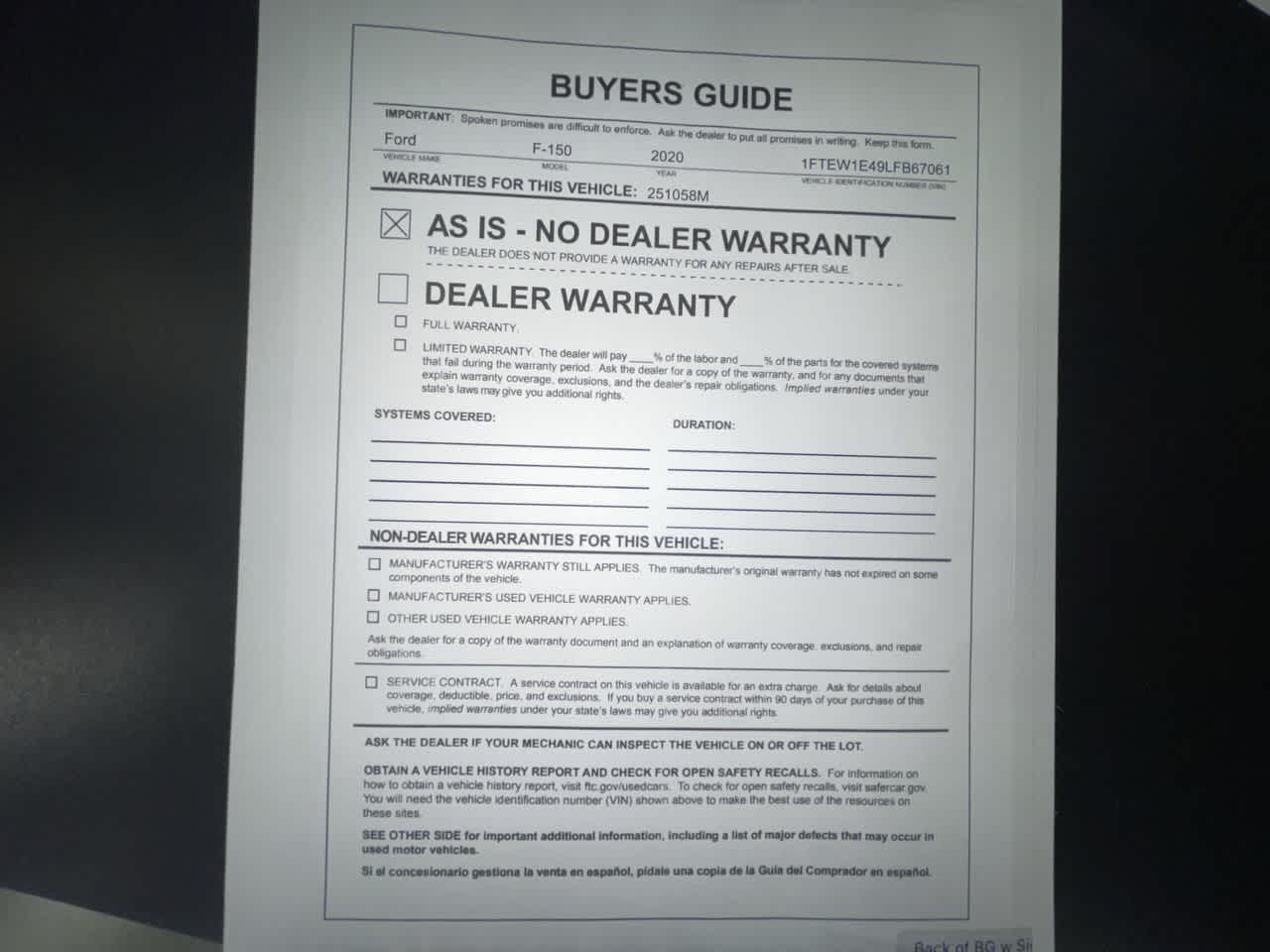 - Vehicle Name: Ford F-150