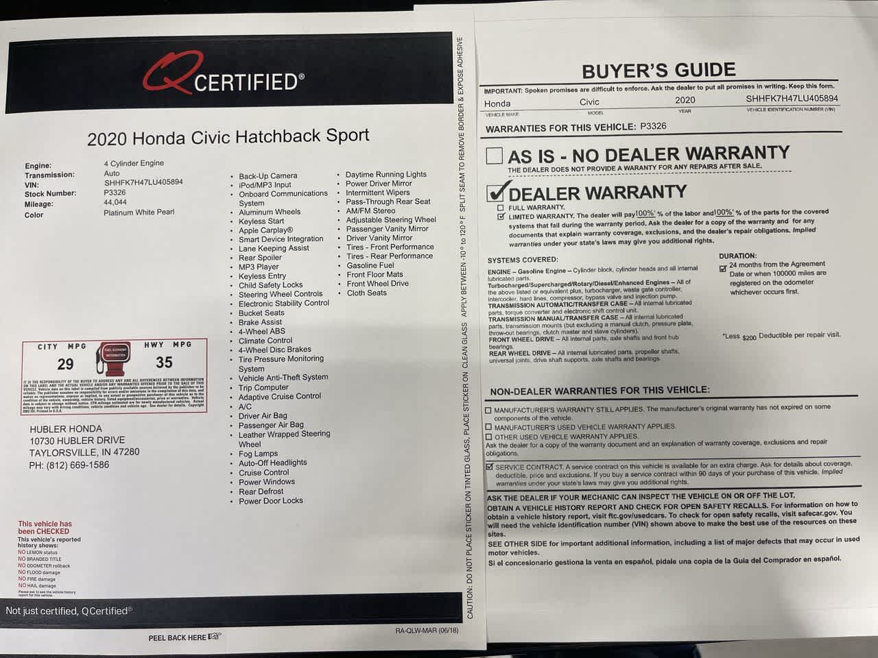 Buy with confidence at Hubler Honda, a dealer to help you!