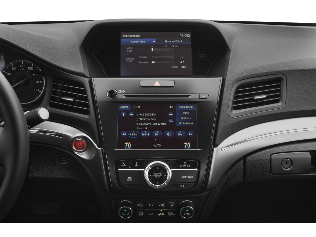 - Radio: Acura Premium Audio System -inc: 7 speakers, Speed-Sensitive Volume Compensation (SVC), USB audio interface, Bluetooth® streaming audio, SiriusXM satellite radio, HD Radio, Pandora compatibility, Bluetooth® HandsFreeLink wireless telephone interface, color multi-information display, On Demand Multi-Use Display (ODMD), Siri Eyes Free, Apple CarPlay integration and Android Auto integration