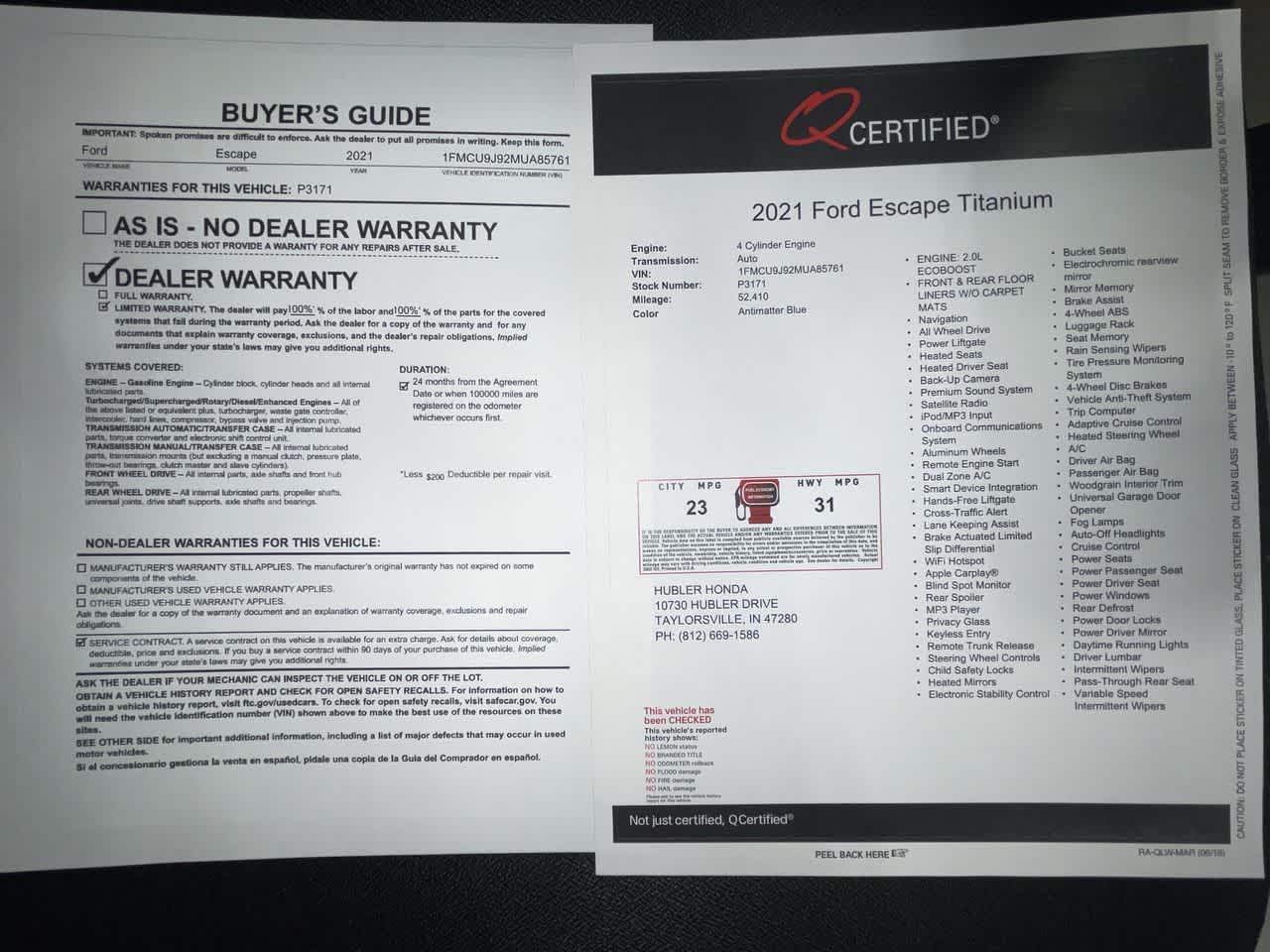 - Vehicle Name: Ford Escape