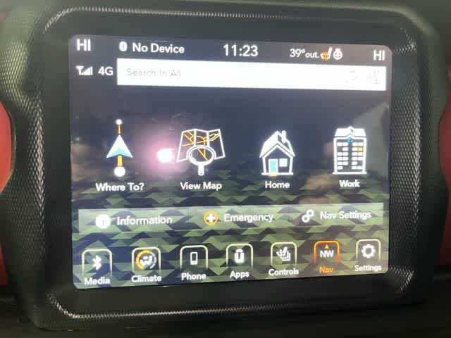 8.4 RADIO & PREMIUM AUDIO GROUP Off-Road Info Pages, SiriusXM Traffic Plus, Alpine Premium Audio System, HD Radio, Radio: Uconnect 4C Nav w/8.4 Display, For Details, Visit DriveUconnect.com, Rear View Auto Dim Mirror, 1-Year SiriusXM Guardian Trial, GPS Navigation, SiriusXM Travel Link, 4G LTE Wi-Fi Hot Spot, Emergency/Assistance Call, 8.4 Touchscreen Display, LEATHER TRIMMED BUCKET SEATS Leather Wrapped Park Brake Handle, Leather Wrapped Shift Knob, Premium Door Trim Panel, COLD WEATHER GROUP Heated Steering Wheel, Heated Front Seats, ENGINE: 3.6L V6 24V VVT UPG I W/ESS (STD).