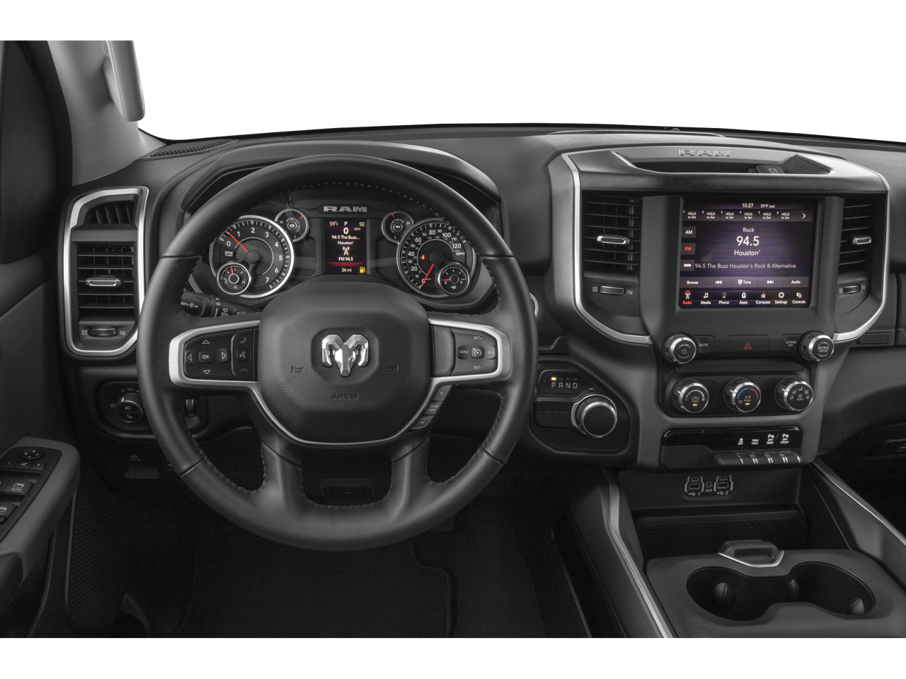 Cross-Traffic Alert, Electronic Stability Control, Adjustable Pedals, Brake Assist, 4-Wheel ABS, Tire Pressure Monitoring System, 4-Wheel Disc Brakes Ram Big Horn with Granite Crystal Metallic Clearcoat exterior and Black interior features a 8 Cylinder Engine with 305 HP at 6400 RPM*.