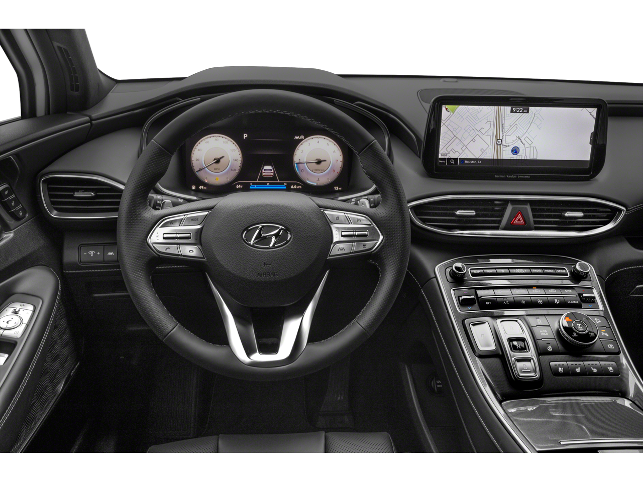 - Radio: AM/FM Harman Kardon Display Audio -inc: 10.25" display screen, Apple CarPlay and Android Auto, Bluetooth® hands-free w/wireless audio streaming, steering wheel audio and phone controls, dual front USB ports, SiriusXM, HD Radio, Blue Link connected car system, 12 speakers including subwoofer, external amplifier, Clari-Fi music restoration technology, QuantumLogic surround, navigation system w/traffic flow including incident data via HD Radio (HERE), rear seat quiet mode and wireless device charging