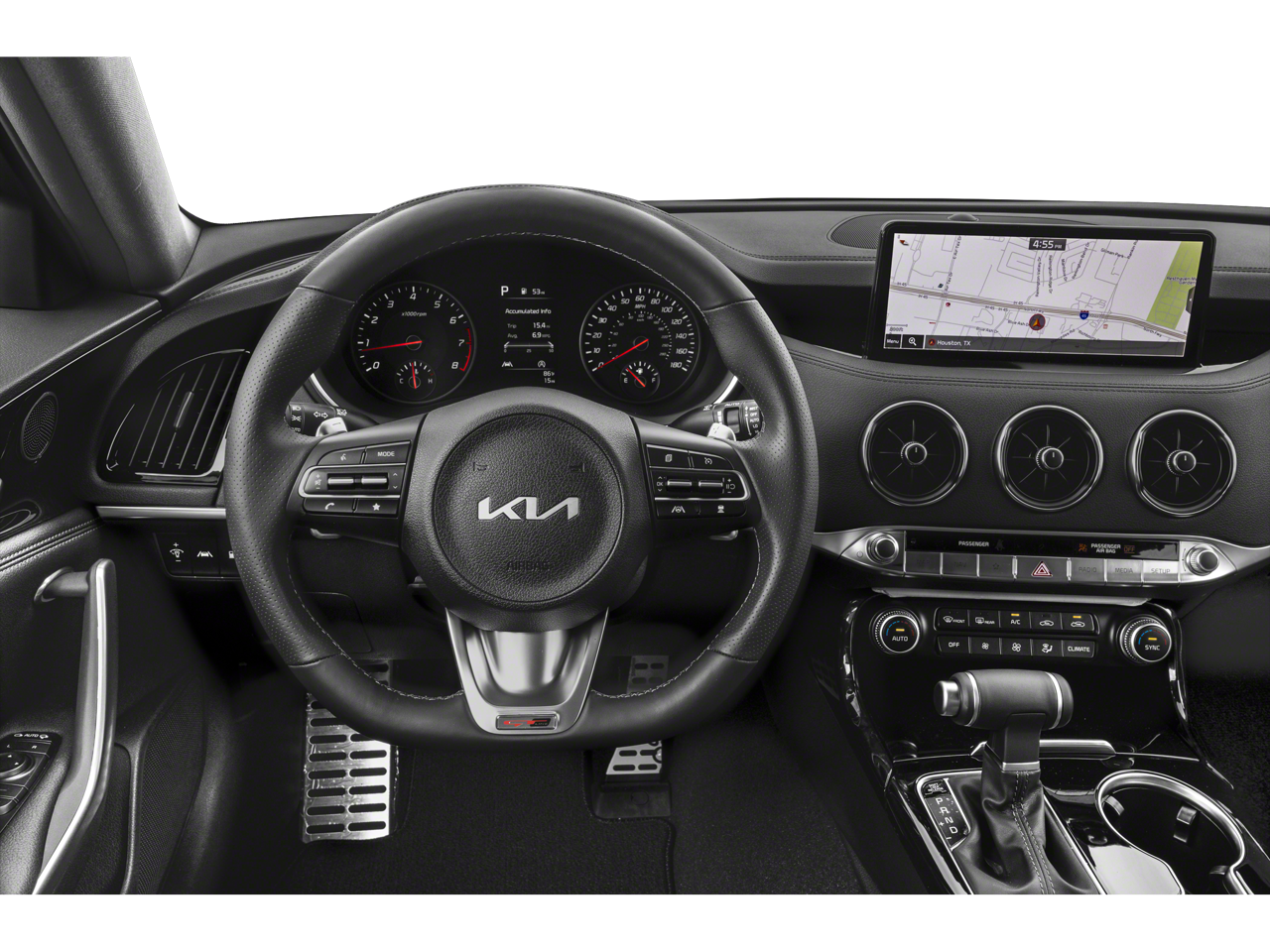SUN & SOUND PACKAGE 8-Way Power Adjustable Passenger Seat, Power Tilt & Slide Sunroof w/1-Touch, Radio: harman/kardon AM/FM/HD Audio System, 720 watts, navigation system w/10.25 touchscreen color display, 15-speakers including dual underseat subwoofers, Quantum Logic surround sound, Clari-Fi signal enhancing technology, USB input, Android Auto®/Apple CarPlay® smartphone integration, Bluetooth® wireless connectivity, wireless charger, steering-wheel-mounted controls, MP3, satellite radio and UVO Link, RED INTERIOR COLOR PACKAGE Red Leather Seat Trim.