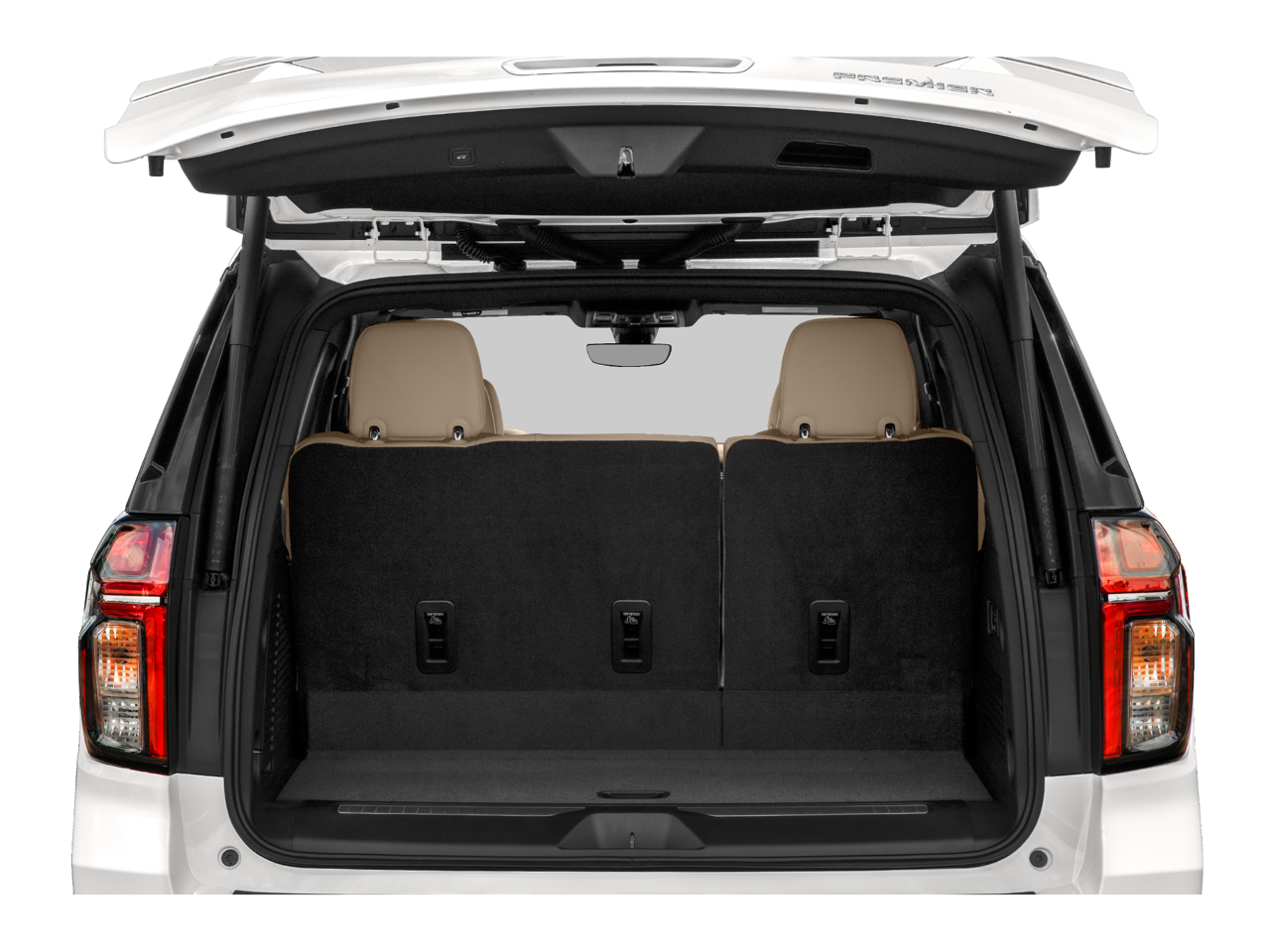 ADVANCED TECHNOLOGY PACKAGE includes (UKL) Super Cruise, (UKZ) Enhanced Automatic Parking Assist and (UVZ) Reverse Automatic Braking (Also includes (Y74) Enhanced Display and Alert Package, (KSG) Adaptive Cruise Control and (UGN) Enhanced Automatic Emergency Braking. ENGINE, 6.2L ECOTEC3 V8 with Dynamic Fuel Management, Direct Injection and Variable Valve Timing, includes aluminum block construction (420 hp [313 kW] @ 5600 rpm, 460 lb-ft of torque [624 Nm] @ 4100 rpm), REAR SEAT MEDIA SYSTEM includes dual rear seat-mounted 12.6" diagonal color-touch LCD HD screens, Wi-Fi wireless projection capability, two 2-channel wireless infrared digital headphones with 2 HDMI ports on the back of the center console; compatible with Bluetooth® headphones, ENHANCED DISPLAY AND ALERT PACKAGE includes (UV2) HD Surround Vision, (UV6) Head-Up Display, (DRZ) Rear Camera Mirror, (CWA) Rear Camera Mirror Washer and (UKK) Rear Pedestrian Alert, TILT-SLIDING with express-open and close and power sunshade, 22" X 9" (55.9 CM X 22.9 CM) POLISHED ALUMINUM (Includes (SFE) wheel locks, LPO.), LPO, ALL-WEATHER FLOOR LINERS, 1ST, 2ND AND 3RD ROWS (dealer-installed), AUDIO SYSTEM, CHEVROLET INFOTAINMENT 3 PREMIUM SYSTEM WITH GOOGLE BUILT-IN 10.2" diagonal HD color touchscreen, includes multi-touch display, AM/FM stereo, Bluetooth® streaming audio for music and most phones; featuring wireless Android Auto® and Apple CarPlay® capability for compatible phones, advanced voice recognition, in-vehicle apps, personalized profiles for infotainment and vehicle settings (STD), TRANSMISSION, 10-SPEED AUTOMATIC electronically controlled with overdrive, includes Traction Select System including tow/haul (Standard with (L84) 5.3L EcoTec3 V8 engine only or (L87) 6.2L EcoTec3 V8 engine only.) (STD), ADVANCED TRAILERING PACKAGE includes (PZ8) Hitch Guidance with Hitch View, (JL1) trailer brake controller and (UET) Smart Trailer Integration Indicator Also includes (UKV) Extended Side Blind Zone Alert.). Chevrolet Premier with Summit White exterior and Jet Black interior features a 8 Cylinder Engine with 420 HP at 5600 RPM*.