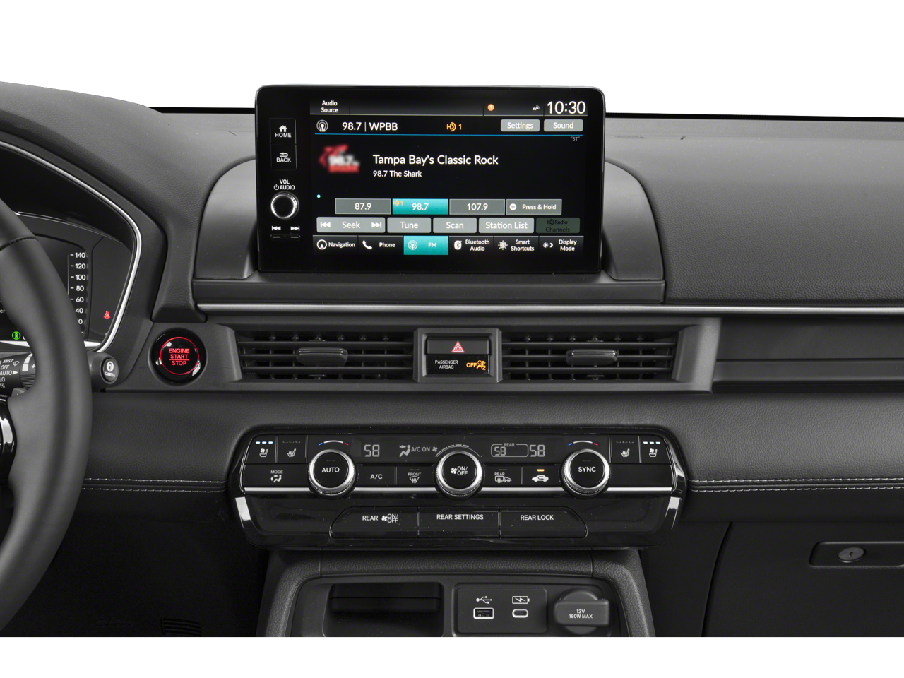 - Radio: BOSE Premium Sound System -inc: 12 speakers w/subwoofer, 9" color touchscreen, Bluetooth® HandsFreeLink and streaming audio, Radio Data System (RDS), Speed-sensitive Volume Compensation (SVC), wireless Apple CarPlay and Android Auto compatibility, Wi-Fi hotspot capability (requires AT&T data plan), SMS text message function (Your wireless carrier's rate plans apply, State or local laws may limit use of texting feature.), SiriusXM (SiriusXM requires a subscription after any trial period, If you decide to continue your SiriusXM service at the end of your trial subscription, the plan you choose will automatically renew and bill at then-current rates until you call SiriusXM at 1-866-635-2349 to cancel, See our customer agreement for complete terms at www.siriusxm.com, Fees and programming subject to change, Available in the 48 contiguous United States and D.C, SiriusXM and all related marks and logos are trademarks of SiriusXM Radio Inc.), HD Radio, 2.5-amp USB type-A smartphone/audio interface port in front console, Honda Satellite-Linked Navigation System w/voice recognition and Honda Real-Time Traffic (The Honda Satellite-Linked Navigation System functions in the United States (not including territories, except Puerto Rico) and Canada, Honda HD Digital Traffic service is only available in the United States, except Alaska, Please see your Honda dealer for details.), HondaLink subscription services ( complimentary trials of security for 1 year and a remote/concierge trial for 3 months, Enrollment is required to access the remote/concierge trial and to access certain features of security, At the end of each trial period, purchase of a subscription is required to continue the respective services.), multi-zone audio and CabinTalk in-car PA system